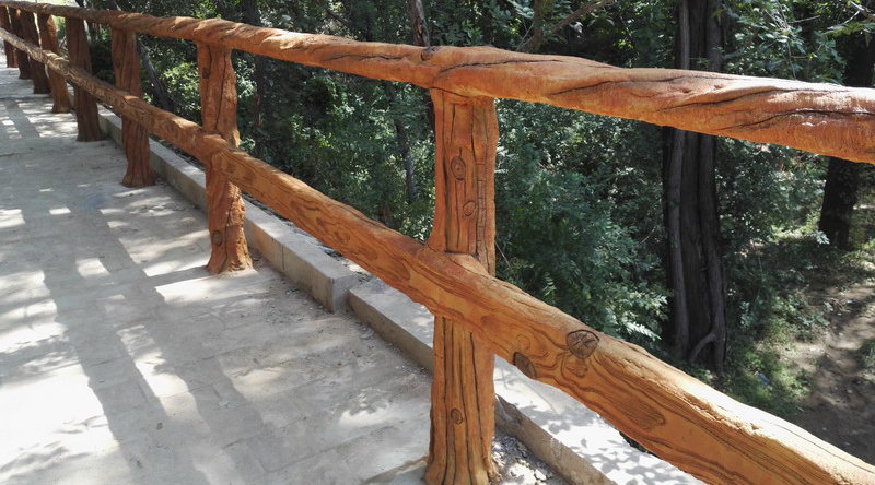 水泥仿木工藝制作出來的產品從外觀上看,水泥仿木和真正木頭制品的視覺效果不相上下,能以假亂真,甚至難以區分,但從使用壽命上說水泥仿木欄桿要遠遠優于防腐木欄桿,經過年長日久風吹日曬也不會腐蝕退色,更不會生蟲.,即環保又解決了木材緊缺的窘況?。